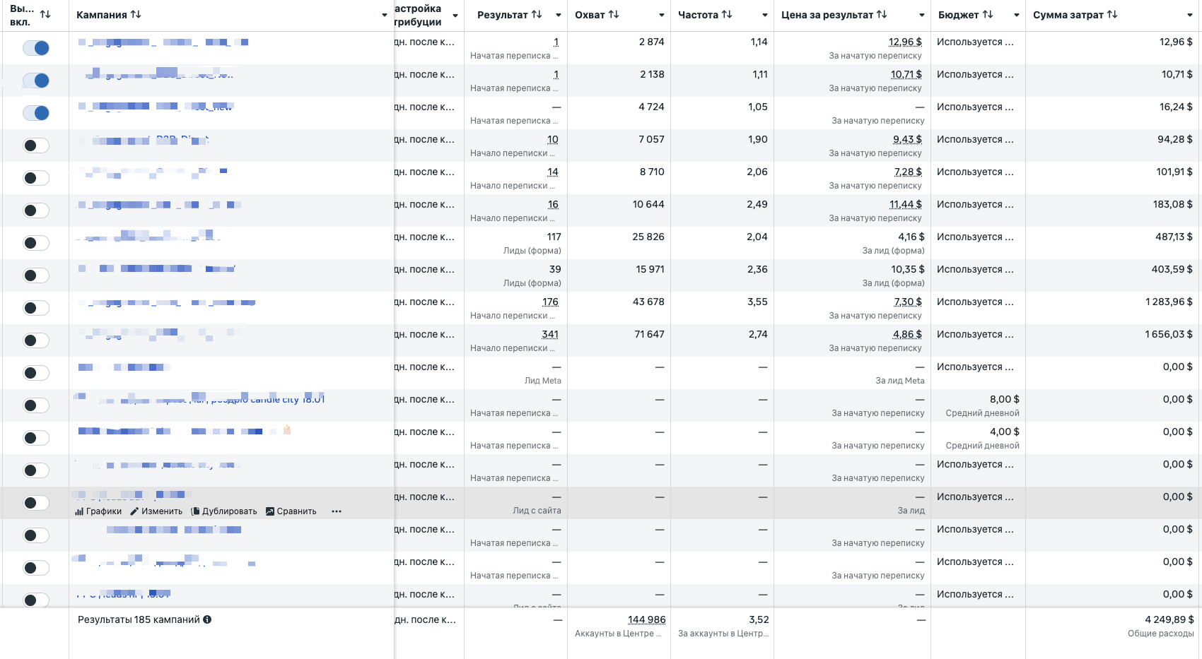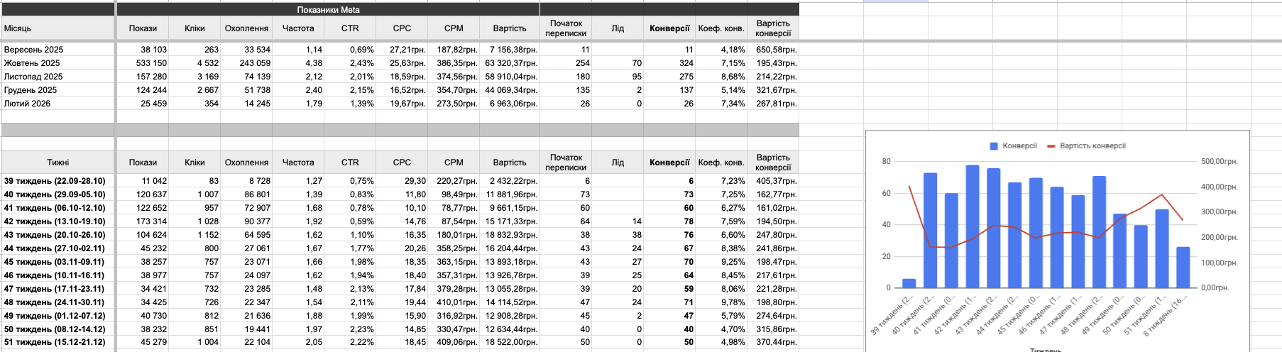 Після запуску рекламних кампаній і коригувань ми отримали такі резульати: